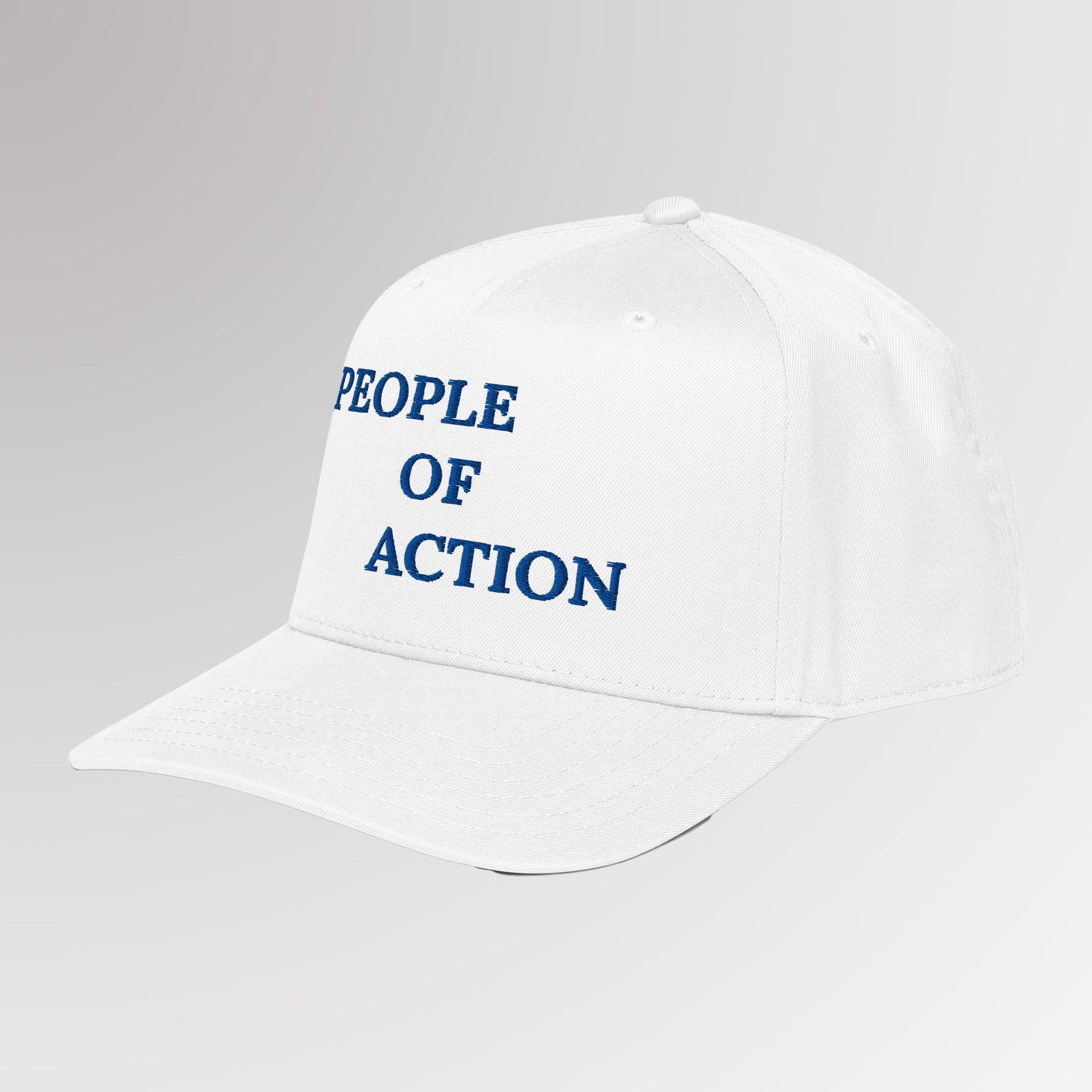 - Front: Embroidered with “People Of Action” in a clean, professional typeface.