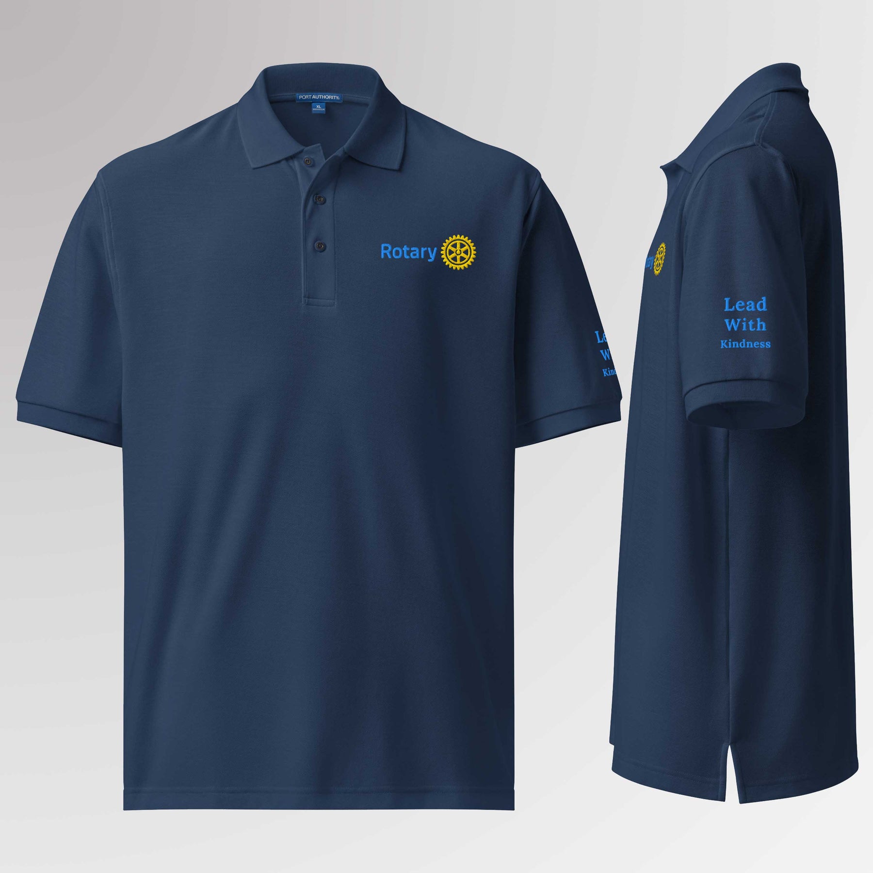 This premium Port Authority polo shirt pairs timeless design with purposeful embroidery, making it ideal for club meetings, outreach events, and everyday representation. On the left chest, you'll find the Rotary simplified Masterbrand logo; on the left sleeve, the phrase “Lead With Kindness” — both embroidered with precision for a polished, high-quality look.
